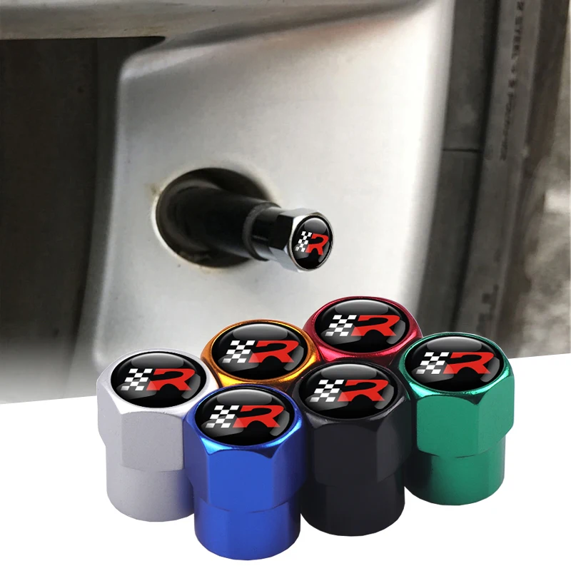 Name: 4 unids/set estilo de coche de aleación de aluminio de R Logo neumáticos de coche válvula tapas para asiento Ibiza Cupra Leon Auto Accesorios